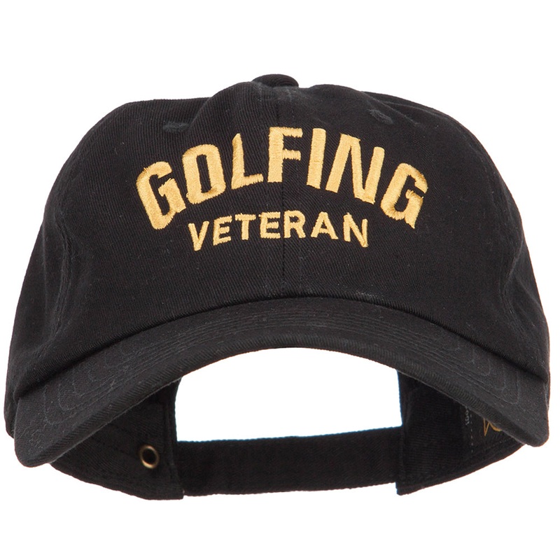 Unique Embroidery, ‘Golfing veteran’ embroidered on the front crown of cap.