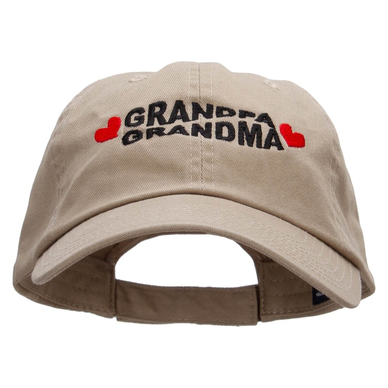 Product Type, Grandma and Grandpa Embroidered Low Profile Dyed Cotton Twill CapMaterial Composition, 100% CottonSize Information, One Size Fits Most, Adjustable Velcro Strap, Fits up to XLCrown Specifications, 3 Inches DeepDesign Details, 6 Panel Unstructu