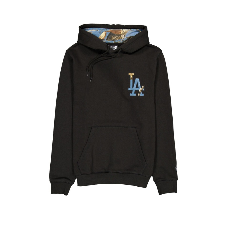 The Los Angeles Dodgers Black Realtree Hoodie features an embroidered Dodgers reflective ink Realtree applique with kangaroo pockets, blue Realtree lining, and a team wordmark at the hood.Fabric: 80% Cotton, 20% Polyester