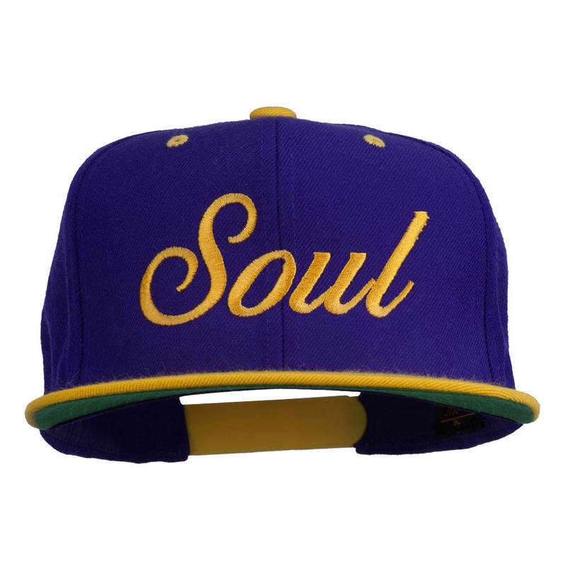 Product Type, Soul Embroidered Snapback CapMaterial Composition, Made of 80% acrylic and 20% woolSize, One size fits most, adjustable plastic snap closure, fits up to XLInner Band, Same material inner hat bandSuitable For, Adult/UnisexCrown Measurement, 5